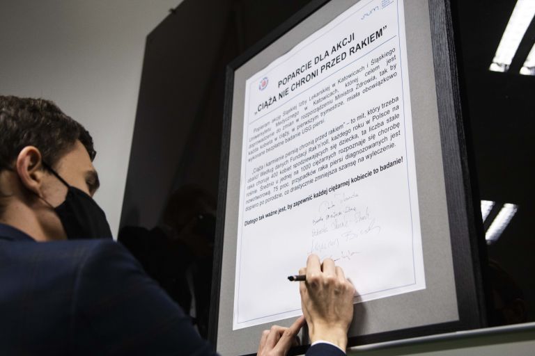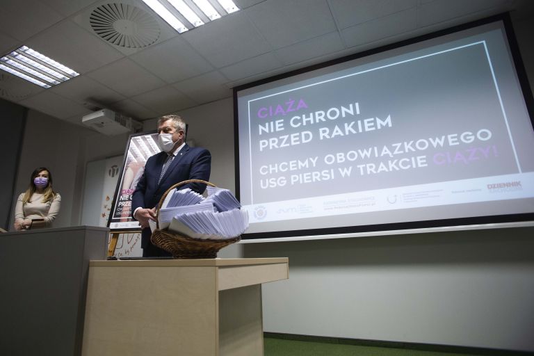 Dzień Kobiet 2021 roku chcemy podkreślić specjalną inicjatywą, której celem jest ochrona kobiet w ciąży przed nowotworem piersi. Dlatego zwracamy się do Polskich Parlamentarzystów, wszystkich opcji, z prośbą o wsparcie akcji „Ciąża nie chroni przed rakiem”. Intencją naszych wspólnych działań jest doprowadzenie do zmian w rozporządzeniu Ministra Zdrowia, tak by każda ciężarna, w pierwszym trymestrze, miała obowiązkowo wykonane bezpłatne badanie USG piersi.