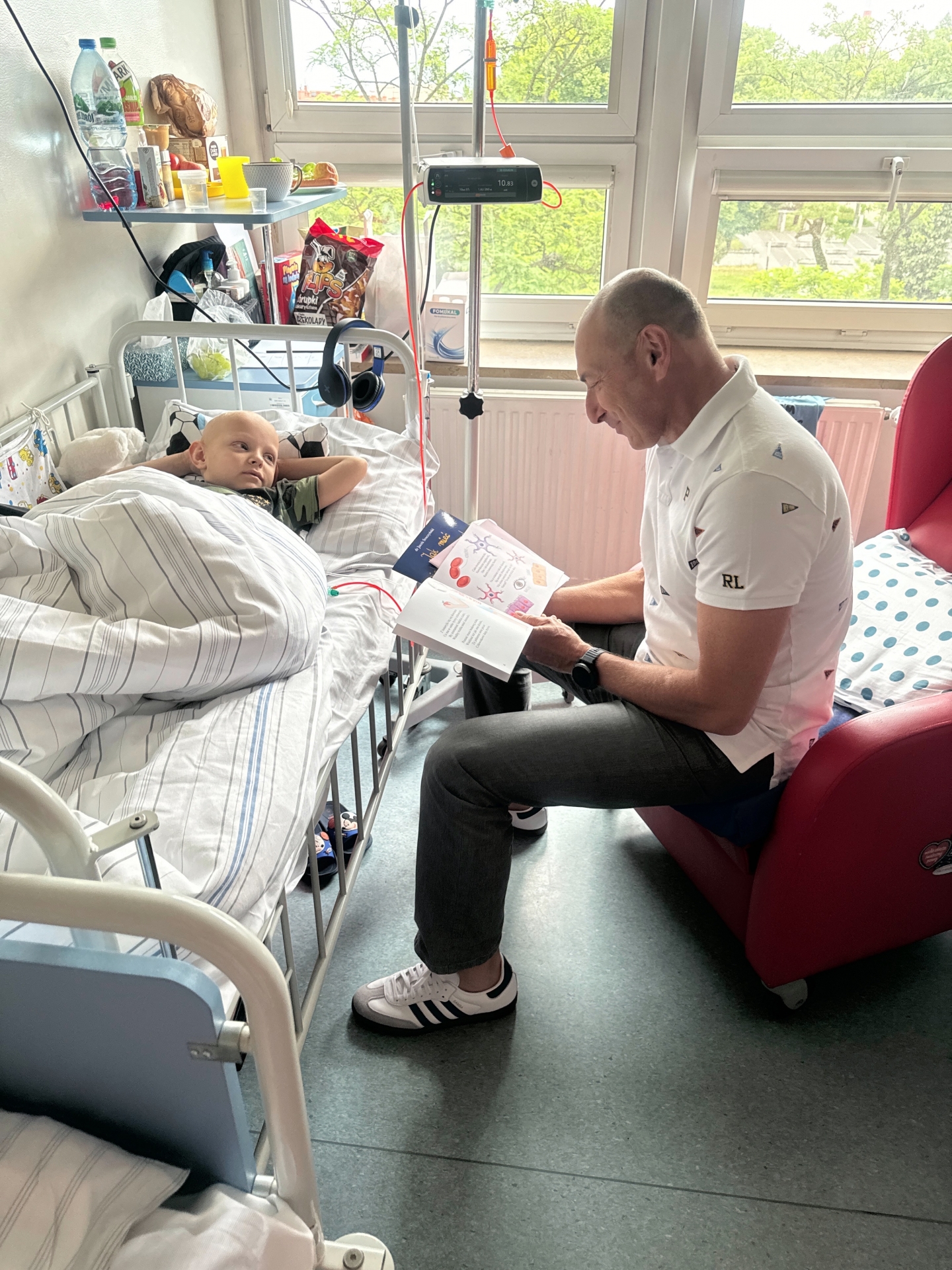 Dzieciom czytano i rozdawano książki dr. Jacka Sroczyńskiego, wydane przez Fundację Pro Medico: „Skąd się biorą dzieci w świecie?”, „Jak jest zbudowany człowiek” i „Jak mieć piękne, zdrowe zęby”. Pierwsza z nich, w zabawny sposób, rozszyfrowuje zagadkę, którą zadają sobie wszystkie dzieci – skąd się biorą? Druga natomiast tłumaczy tajemnice ludzkiego organizmu, opowiada o narządach, kościach, komórkach i tkankach. Opisane w niej zostały podstawowe funkcje życiowe, takie jak oddychanie czy jedzenie. Ostatnia książka uczy jak dbać o zęby. Wszystkie napisane są wierszem. Do wspólnego czytania małych pacjentów zachęcały dwie duże maskotki – Chase i Skye z bajki „Psi Patrol”. Pomimo pobytu w szpitalu, udało się w ten szczególny dzień wywołać uśmiech na dziecięcych twarzach.