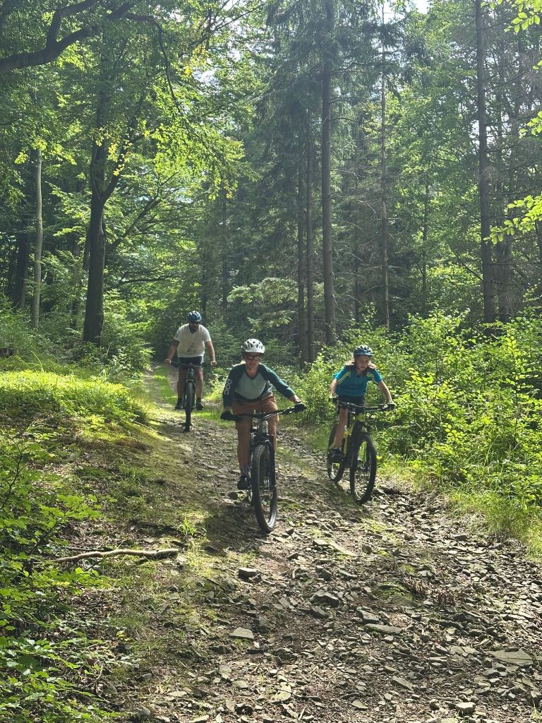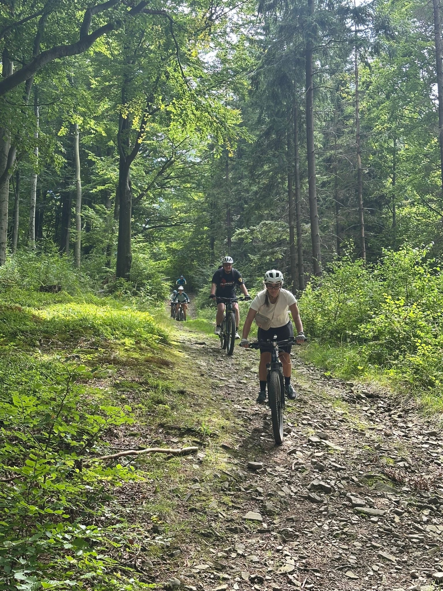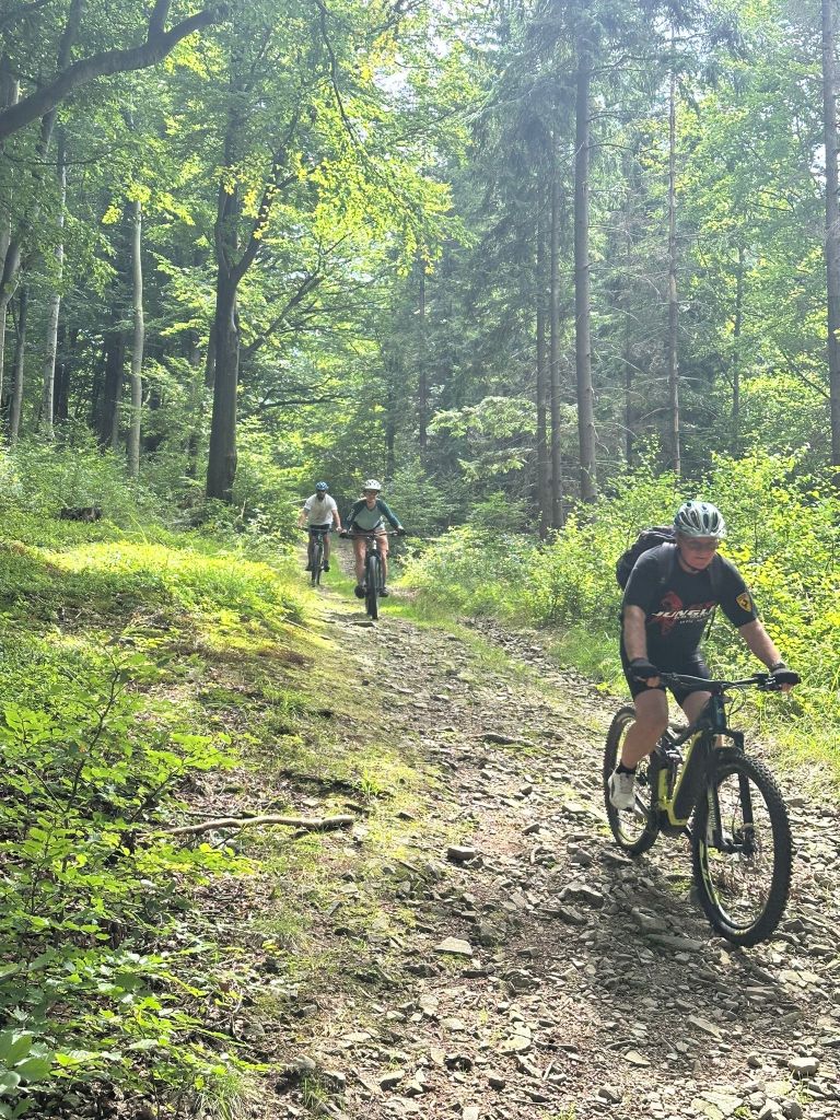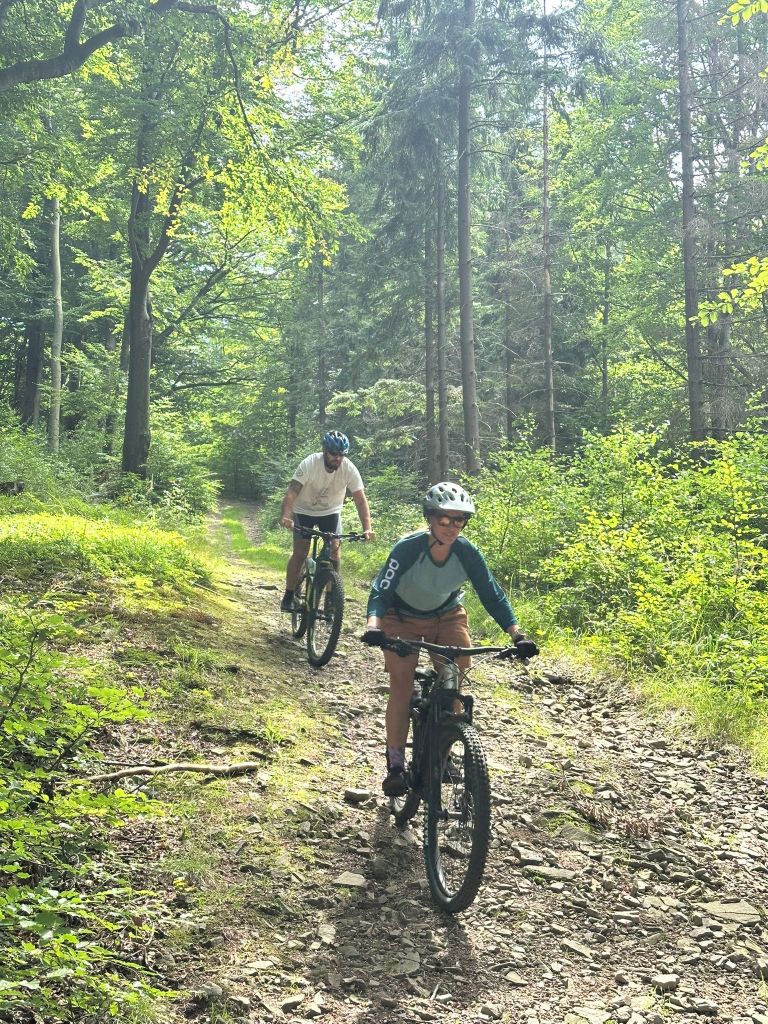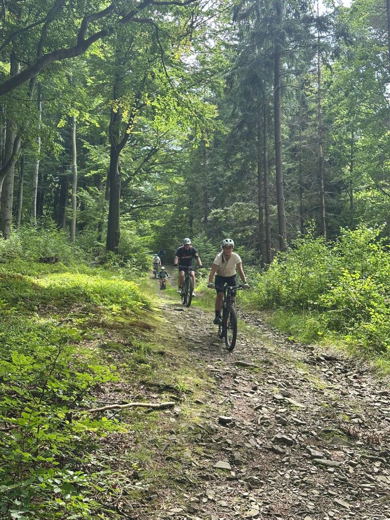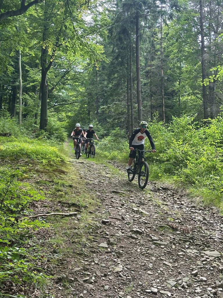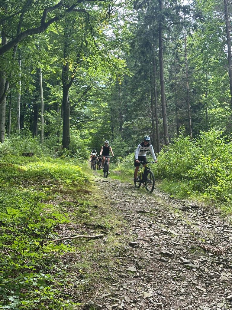 Cała grupa przejechała wspólnie 31 km pięknymi beskidzkimi szlakami, pokonując asfalt i żwir w proporcji 70:30. Było trochę podjazdów, sporo widoków i dużo radości z jazdy w świetnym towarzystwie.