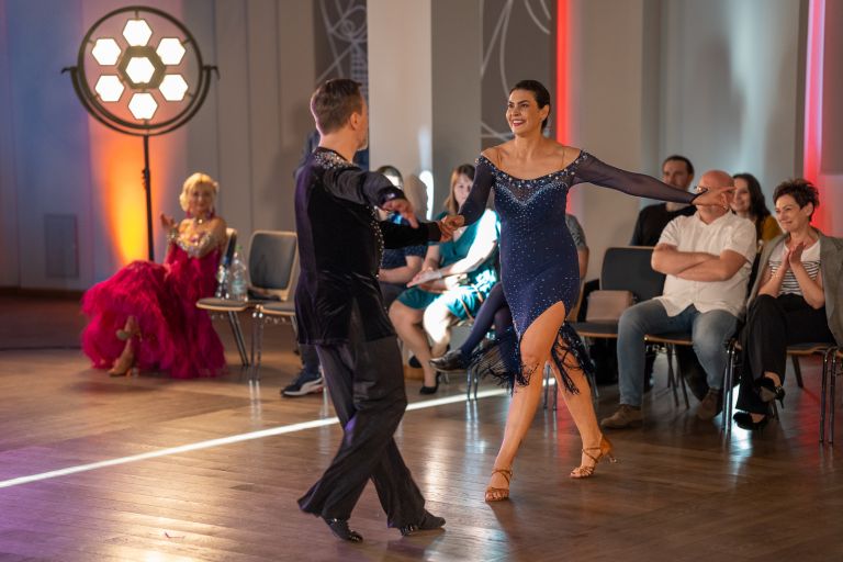 Walc angielski, walc wiedeński, tango, fokstrot, quickstep, flamenco, zouk, salsa kubańska, kizomba, cha-cha, samba, rumba, paso doble, jive – to tańce zaprezentowane podczas I Festiwalu Tańca Śląskiej Izby Lekarskiej, który odbył się 22 kwietnia 2023 r. w Katowicach.