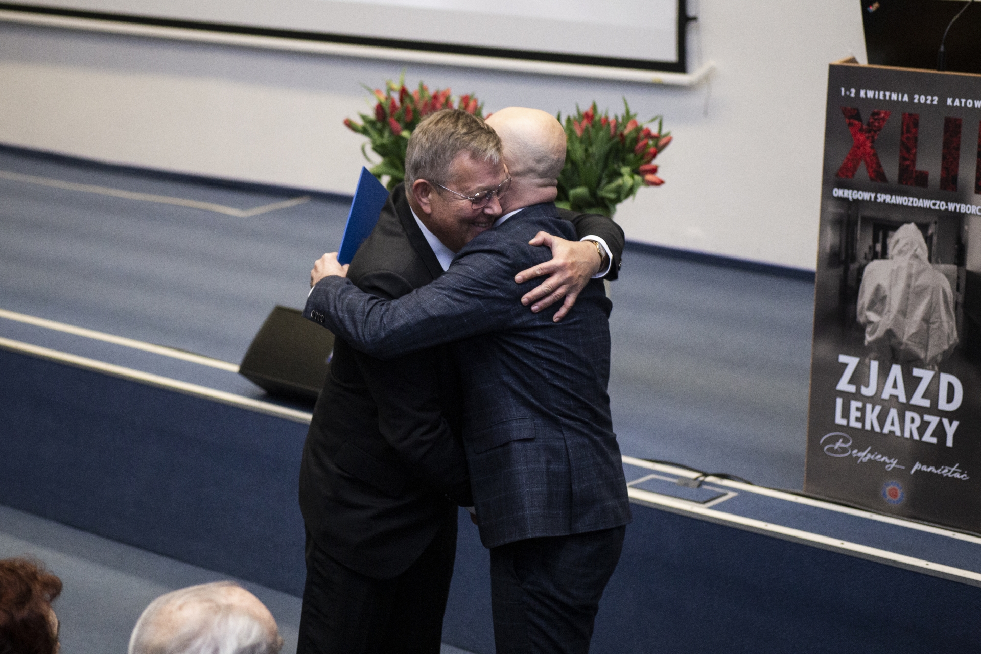 Lekarze dla Lekarzy – z Wami dla Was! - tymi słowami – misją Śląskiej Izby Lekarskiej – Prezes dr n. med. Tadeusz Urban otworzył część uroczystą XLII Sprawozdawczo-Wyborczego Zjazdu Lekarzy. Prezes Tadeusz Urban podsumował 4 lata swojej kadencji oraz najważniejsze wydarzenia tego czasu, zaznaczając, że ten Zjazd jest wyjątkowy, ponieważ samorząd lekarski ma za sobą bardzo trudną kadencję, naznaczoną przez pandemię. „Pandemia dotknęła wiele osób, ale w sposób szczególny odcisnęła piętno na naszej grupie zawodowej. Lekarze stojąc na pierwszej linii frontu, stali się ofiarami tej walki. Plakat, który jest symbolem tego Zjazdu, ma uczcić pamięć naszych Koleżanek i Kolegów, którzy poświęcali się walce i którzy ponieśli najwyższą cenę" – mówił.