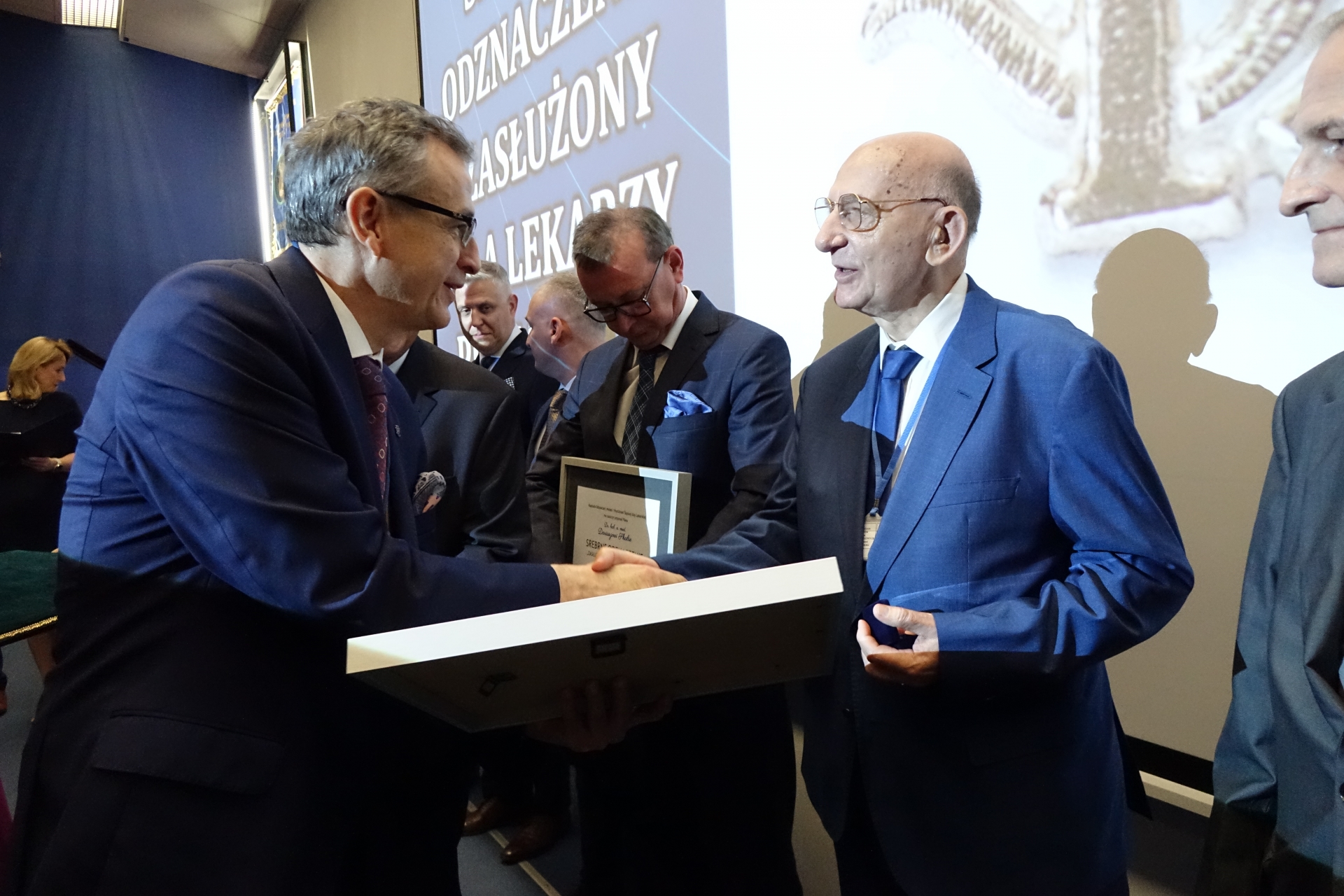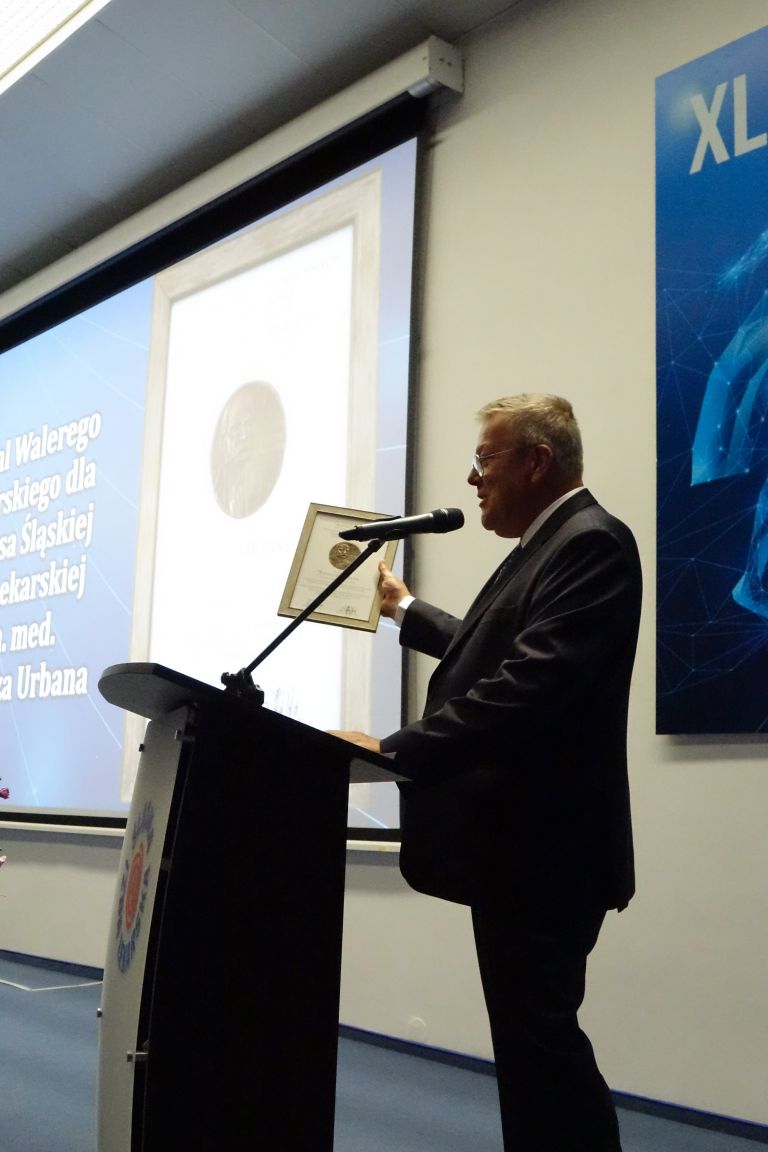 Na zakończenie części oficjalnej zjazdu na scenę został poproszony prof. dr hab. n. med. Zdzisław Gajda - Prezes Krakowskiego Towarzystwa Miłośników Historii Medycyny, który wręczył Prezesowi dr. n. med. Tadeuszowi Urbanowi medal Walerego Jaworskiego w uznaniu zasług za utworzenie Muzeum Historii Medycyny i Farmacji Śląskiej Izby Lekarskiej.